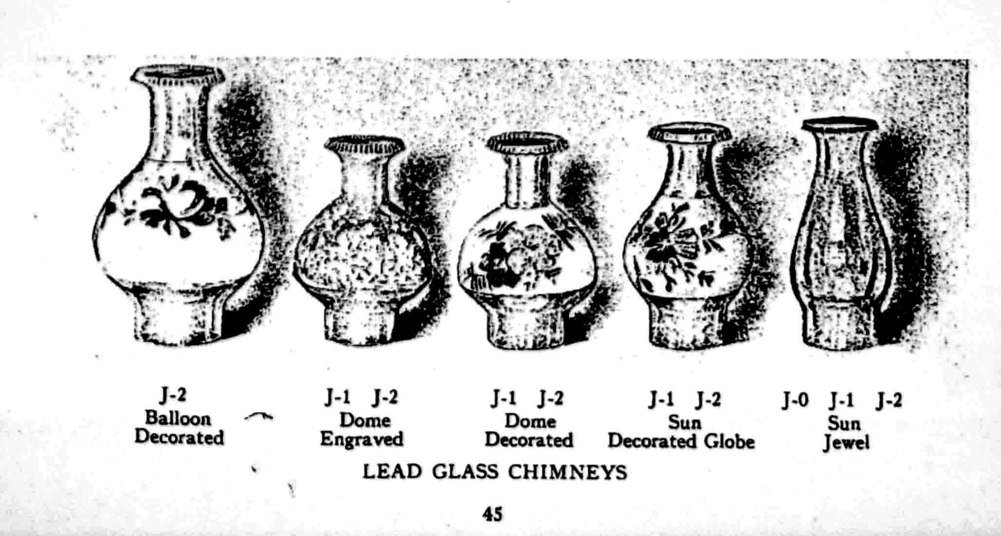 Miscellaneous Lamp Prices , Gausler Hoffman, Pittsburgh Lamp, Brass & Glass Co., Lead Chimneys Hibbard-Spencer Bartlett: (Top Row: L to R SI-510, SI-479, HI-63, HI-325) (Bottom Row: L to R SI-219, SI-29, S2-127, S2-68)